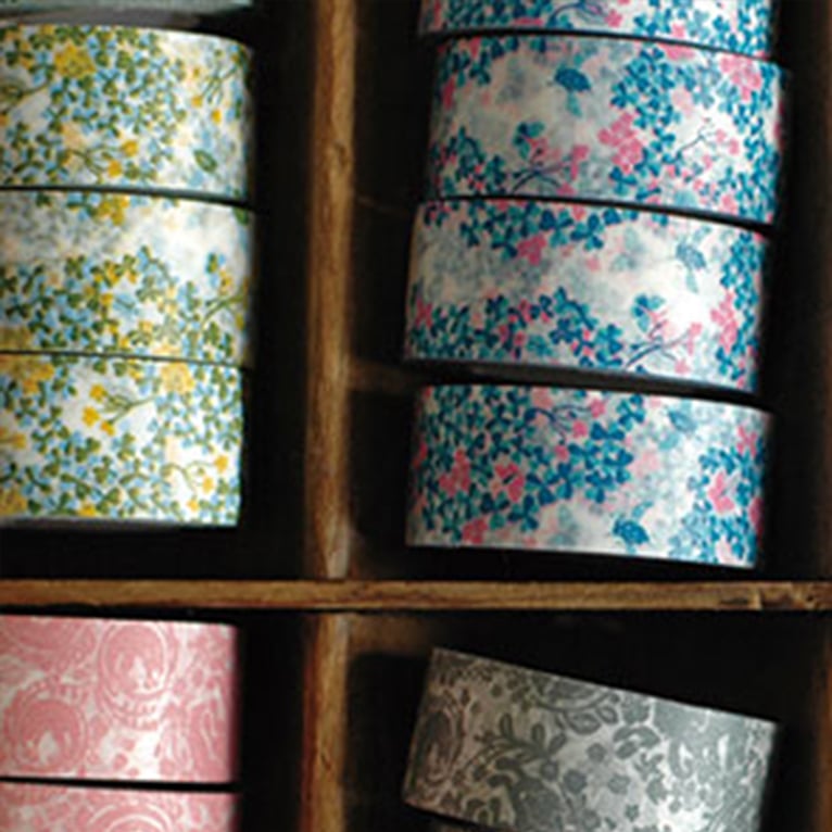 Rolls of masking tape featuring illustrations by Japanese artist Mihani Kobo in floral patterns